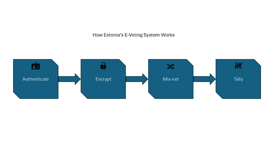 As of the 2023 national parliamentary elections, more than 50% of Estonian voters cast ballots online [4]. Despite this success, concerns remain. Critics warn that malware on voters’ personal devices could alter votes before encryption, and remote voting cannot fully prevent coercion or vote buying. Newer research in 2025 also highlights traffic analysis inference attacks as a threat, since encrypted vote submission may still leak metadata [3]. Estonia demonstrates that strong cryptography can make national e-voting possible, but it cannot eliminate all risks.