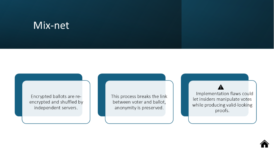 Malware on Voter Devices | Remote voting depends on personal devices (phones, PCs), which may be infected with malware that alters, blocks, or leaks votes before encryption. Cryptography cannot fix an already compromised client [21]. | Encourage supervised polling stations or trusted hardware tokens. Provide independent verification channels such as out-of-band confirmation codes. | In 2010, researchers hacked Washington, D.C.’s online voting pilot within 48 hours, changing ballots and adding the university fight song [23]. |